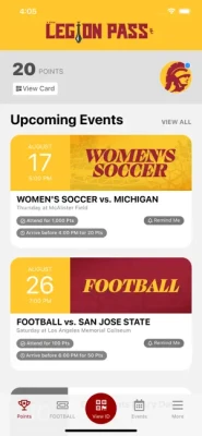 USC Students! With The Legion Pass app you can:• Signup for a rewards account• See upcoming events that you can attend for points• Checkin to events• Connect to various social media accounts to earn points• See your point total and browse the prize store• Explore all the ways you can earn points• Manage your rewards accountReset your rewards account password