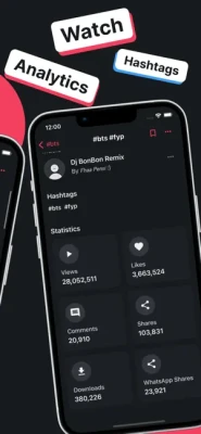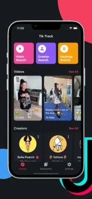 Tik Track Features- Profile Analytics- Video Analytics- Hashtags & Trends- Bookmark Videos, Profiles & Musics