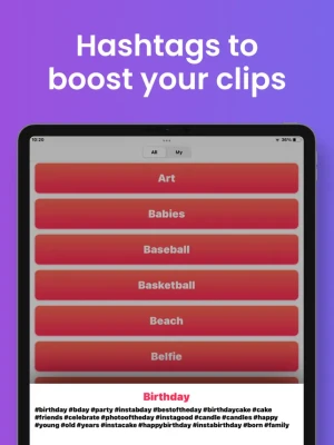 - Hashtags generator: tag suggestions for your posts. This feature will help you boost your videos and reach greater audiences.