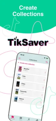 Create bookmarks and manage videos with TikSaver. Create collections, share video or audio with your friends!