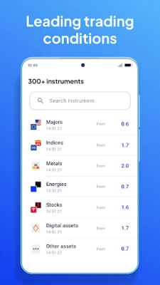 Octa online trading app lets you view, analyse, and trade over 300 financial instruments. Buy, sell, exchange, grow your portfolio, and make a profit. Live market quotes, financial market news, profit calculator and other tools will ease your way—money control and investing have never been so simple. Track share price movements, market indices, and historical performance for all assets.