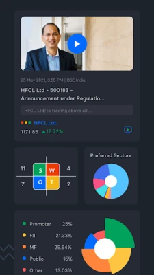 Keep track of price feeds, technicals, SMA/EMA, delivery and volume, insider trades, bulk block deals and more. Quickly find out all the major movements in the market. Add stocks to your watchlists and alerts to track them easily.