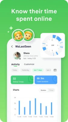 Know the time spent and times at a specified time, such as monitoring your kids' Chat (Whats) App status during sleep time.