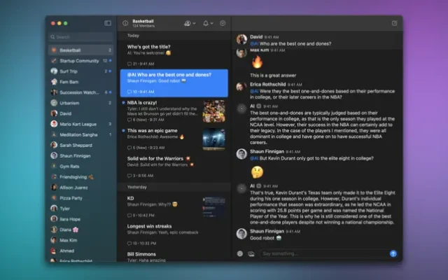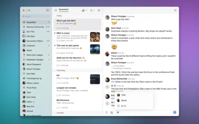 • Effortless threading: In a traditional group chat you can only talk about one thing at a time. If a conversation is noisy, the only option is to mute the entire group. On Wavelength, you can mute a thread about a basketball game you’re not interested in, while staying looped in on another thread about dinner plans for tonight. It’s simple and intuitive.