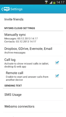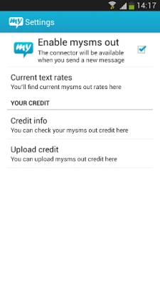 2) Start mysms, go to settings and configure mysms out under "Websms connectors"