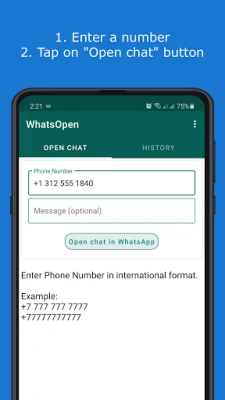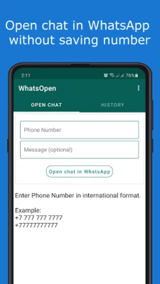 Open chat in WhatsApp without saving number. It is a simple tool helps to send messages in WhatsApp to any numbers not saved in your contacts list.