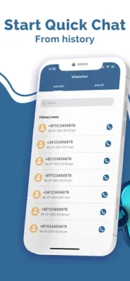 App will notify you if the new contact number does not exist on WhatsApp and you can use default messaging app of your phone without need of adding number as a contact. You can also select number from recent call logs to quickly get in contact.