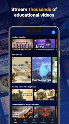 A Wondrium subscription grants seamless online and offline access to our extensive library of online courses, empowering you to learn and grow at your own pace. Existing users can sign in to access content, while new users can register and subscribe directly within the app to access thousands of educational videos online and offline for one low price.