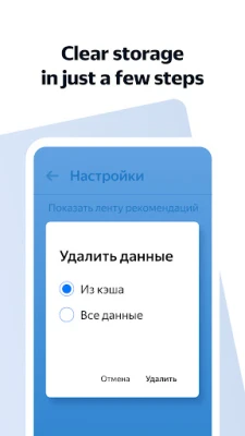 With Yandex Browser Lite you can: - Browse quickly, and save on your phone’s battery power and storage. - Find what sites you need or ask Yandex questions with the SmartBox search bar. - Go to your most visited sites from visual bookmarks from your main screen’s Tableau. Low on storage space on your smartphone? - Easily clear the cache and cookies right in Settings. - Store Yandex Browser Lite on either your memory card or your device.