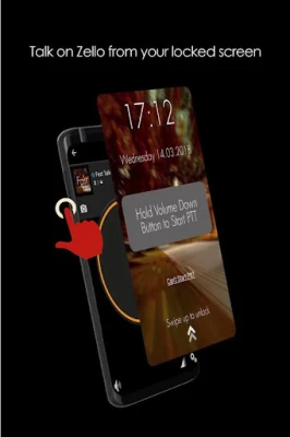2: Hold Volume Down/Custom button to PTT in the previously selected Zello/VoicePing Channel
