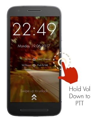 Use Volume Down or any custom button to start PTT (Push to Talk) for Walkie Talkie Apps like Zello and VoicePing.